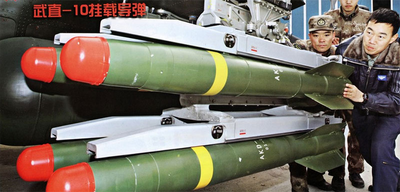 【環(huán)球網(wǎng)綜合報道】近日,一張國產(chǎn)新型直-10武裝直升機裝填彈藥的照片在網(wǎng)絡(luò)上曝光。照片中,一架直-10型武裝直升機的單個掛架上同時掛載了一個副油箱和4枚反坦克導(dǎo)彈。據(jù)悉,該型導(dǎo)彈是我國最新研制的AKD-10型反坦克導(dǎo)彈,該型導(dǎo)彈是專門為武裝直升機研制的空對地型攻擊導(dǎo)彈。有分析稱,AKD-10導(dǎo)彈性能強大,可以快速捕獲和自動跟蹤目標,打擊精度在3米以內(nèi),可在3000米的距離捕獲目標,飛行距離在5000米以上。