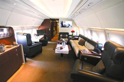 公務(wù)機(jī)機(jī)艙內(nèi)添置圓桌、臥室、會(huì)客沙發(fā)等,供商務(wù)旅客休閑使用 王浩然攝