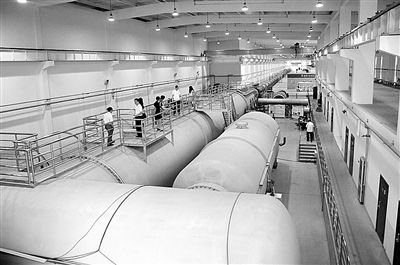在北京市郊的雁棲湖畔,有一棟長(zhǎng)條形的灰色建筑,這是錢學(xué)森工程科學(xué)實(shí)驗(yàn)基地的空天飛行器實(shí)驗(yàn)室。建筑中有一條265米長(zhǎng)的巨大管道,這是“JF12復(fù)現(xiàn)高超聲速飛行條件激波風(fēng)洞”。