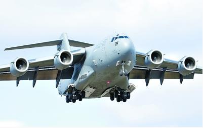 運-20采用常規(guī)布局,機翼為懸臂式上單翼,前緣后掠角24°,無翼梢小翼。懸臂式T形尾翼。垂直安定面與機身連接處向前伸有小背鰭,嵌入式方向舵分為上、下兩段,升降舵分為兩段。液壓可收放前三點式起落架,可靠重力應(yīng)急自由放下。前起落架為雙輪,主起落架為6輪。前起落架向前收入機身,主起落架旋轉(zhuǎn)90°向里收入機身兩側(cè)整流罩內(nèi)。該機為大展弦比超臨界翼型,采用包括前緣縫翼及外吹式襟翼系統(tǒng)等增升裝置。