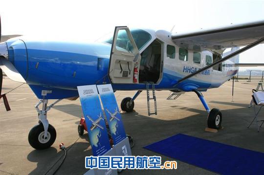 3月27日,為期三天的2012亞洲公務(wù)航空會議及展覽會(ABACE2012)在新落成的上;艨颂窖蠊珓(wù)航空中心開幕。圖為豪海通航攜賽斯納飛機(jī)亮相上海ABACE2012。攝影:安利國