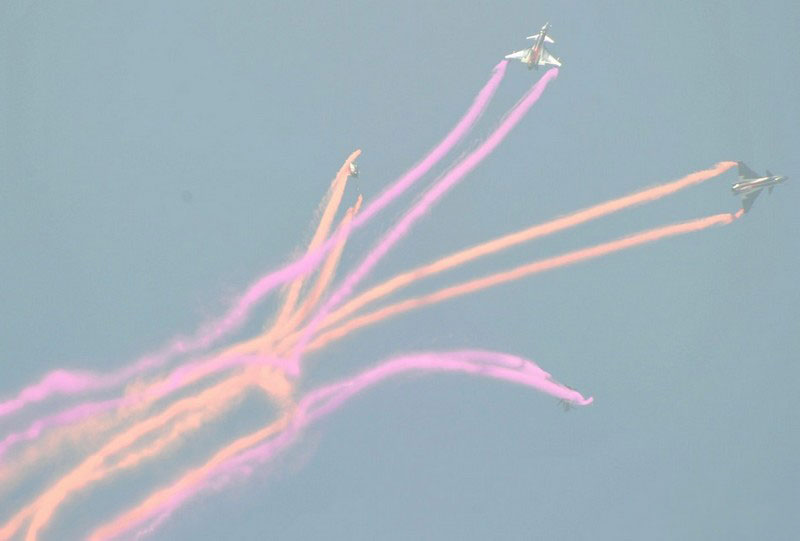 【環(huán)球網(wǎng)赴珠海航展特派報(bào)道組綜合報(bào)道】第九屆中國(guó)國(guó)際航空航天博覽會(huì)(珠海航展2012)將于11月13日-18日在廣東省珠海市金灣區(qū)三灶鎮(zhèn)隆重舉行。開(kāi)展當(dāng)日,中國(guó)空軍八一飛行表演隊(duì)的6架殲-10戰(zhàn)機(jī)翱翔藍(lán)天,漫步云端。