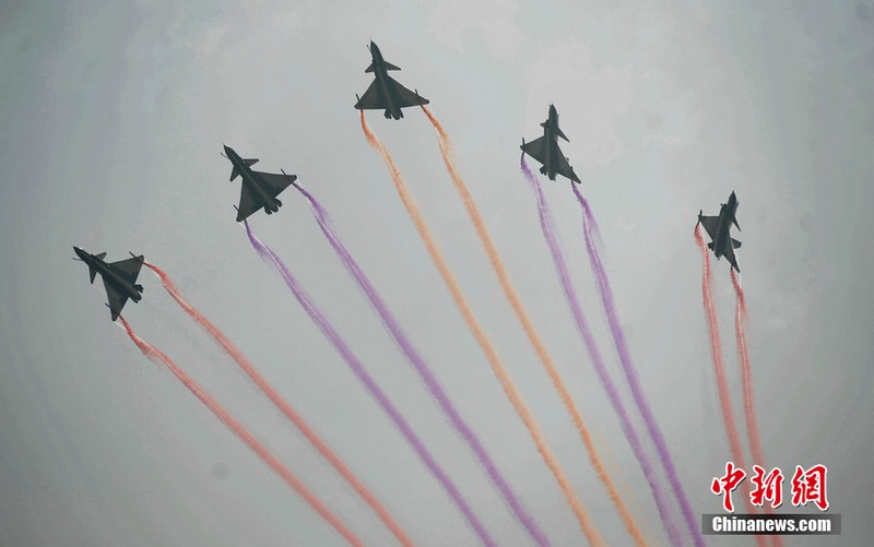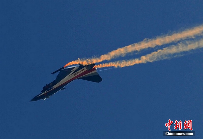 中國空軍八一飛行表演隊(duì)上演了“向上開花”、“雙機(jī)對沖”、“小半徑轉(zhuǎn)圈”等精彩動作。記者曾多次觀看過八一飛行表演隊(duì)的表演,而這次是最精彩的一次。