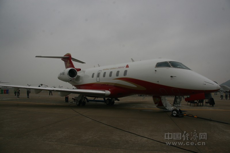 中國經(jīng)濟(jì)網(wǎng)珠海航展記者團(tuán)記者王飛報(bào)道 漢華航空有限公司引進(jìn)的第2架挑戰(zhàn)者300公務(wù)機(jī)在珠海航展進(jìn)行靜態(tài)展示,該機(jī)編號(hào)B-8116,系加拿大龐巴迪公司出品。