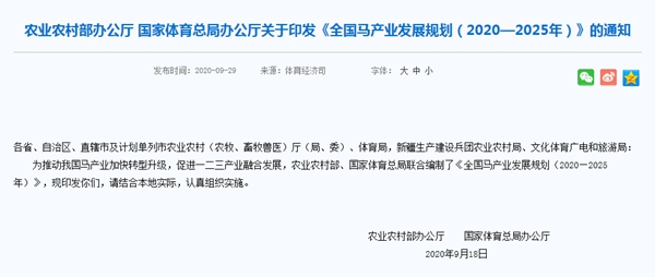 全國(guó)馬產(chǎn)業(yè)發(fā)展規(guī)劃(2020—2025年)
