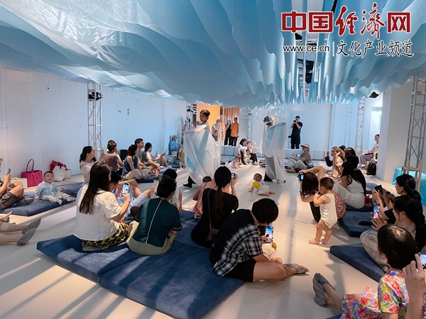 8月22日下午,在天橋藝術(shù)中心第五空間,一場沉浸式互動(dòng)?jì)胗變簯騽 禣hh…Ocean!》正在上演,與其他戲劇不一樣的是,這些觀眾都是半歲至1歲的小寶寶。小寶寶們與家長一起,席地而坐,在音樂中與演員們一起感受海洋空間。天橋藝術(shù)中心第五空間運(yùn)營負(fù)責(zé)人陳莉告訴記者:“內(nèi)容和空間是雙向奔赴的。我們開始做這些空間的時(shí)候,不知道未來會(huì)有什么樣的內(nèi)容使用這些空間。直到引進(jìn)這個(gè)劇目,使空間與內(nèi)容非常好地結(jié)合了起來。”