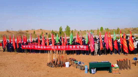 中國經(jīng)濟網(wǎng)4月23日訊 4月22日,正值第57個世界地球日暨第二十二屆庫布其植樹節(jié),內(nèi)蒙古庫布其“綠水青山就是金山銀山”實踐創(chuàng)新基地同步聯(lián)動騰格里沙漠、烏蘭布和沙漠等“三北”工程沿線億利資源集團治沙基地,舉行“不忘初心,治沙百年”科技植樹活動。