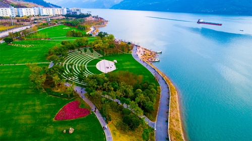 云陽縣濱江公園開闊整潔的月光草坪緊鄰長江,綠草如茵,綠樹成蔭,自行車道、跑步道、漫步道、驛站等休閑設(shè)施一應(yīng)俱全,是這座移民新城的重要休閑娛樂場所。漫步月光草坪,42歲的庫區(qū)移民鐘燕興奮地指點(diǎn)著說,白天市民跑步鍛煉、釣魚游泳,晚上休閑散步、跳廣場舞,日子安逸得很!