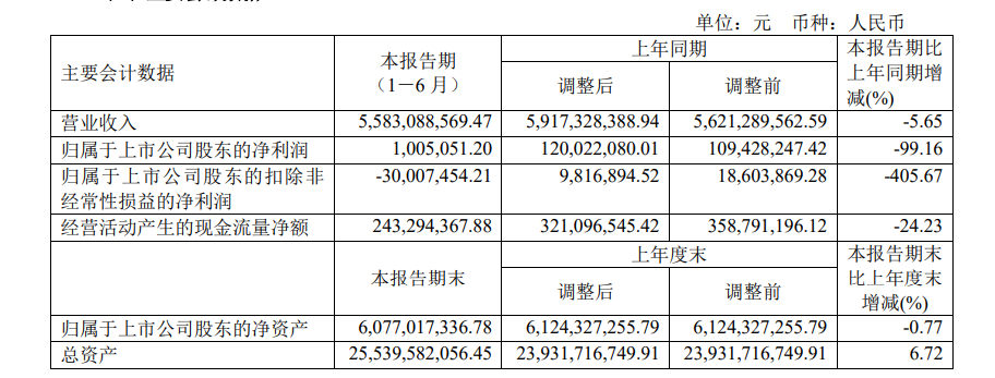 8月25日,華北制藥披露《2021年半年報(bào)》,公司營收凈利雙雙下降。其中,實(shí)現(xiàn)營收558308.86萬元,同比降低5.65%;歸屬于上市公司股東的凈利潤為100.51萬元,同比降低99.16%;歸屬于上市公司股東的扣除非經(jīng)常性損益的凈利潤為-3000.75萬元,虧損同比擴(kuò)大405.67%;經(jīng)營活動(dòng)產(chǎn)生的現(xiàn)金流量凈額為24329.44萬元,同比下降24.23%。