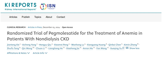 近日,國際腎臟病領(lǐng)域著名期刊Kidney International Reports(IF:5.7/Q1)在線發(fā)表了由廣東省人民醫(yī)院余學(xué)清教授牽頭的培莫沙肽注射液(商品名:圣羅萊)在非透析腎性貧血患者中開展的Ⅲ期臨床研究數(shù)據(jù)。