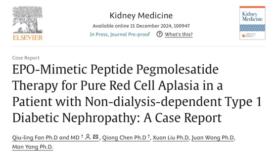 近日,美國腎臟基金會(NKF)官方期刊《腎臟醫(yī)學》(Kidney Medicine)發(fā)表了由上海交通大學醫(yī)學院附屬第一人民醫(yī)院腎內科范秋靈教授主導研究的一篇有關促紅細胞生成素(EPO)模擬肽——培莫沙肽(商品名:圣羅萊)的病例報告。該報告首次顯示了培莫沙肽能夠有效治療EPO誘導的純紅細胞再生障礙性貧血(PRCA)患者,且安全性良好,為這種罕見但嚴重的并發(fā)癥提供了一種頗具前景的創(chuàng)新解決方案。
