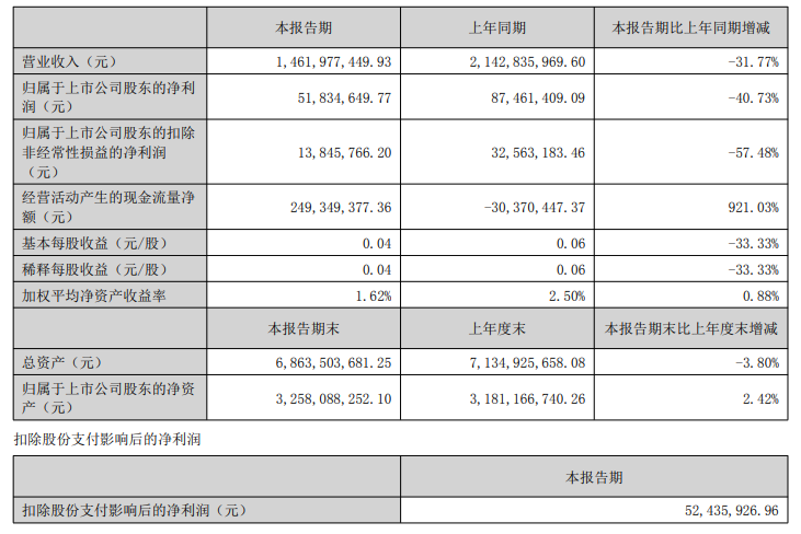中國(guó)經(jīng)濟(jì)網(wǎng)北京8月20日訊(記者 郭文培)8月20日,貴州百靈披露2025年半年度報(bào)告。報(bào)告期內(nèi),公司實(shí)現(xiàn)營(yíng)業(yè)收入14.62億元,同比下降31.77%;歸屬于上市公司股東的凈利潤(rùn)為0.52億元,同比下降40.73%。