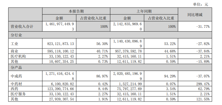 根據(jù)半年報(bào),醫(yī)藥工業(yè)仍是貴州百靈業(yè)績(jī)重要支撐,貢獻(xiàn)逾一半營(yíng)收。具體來看,工業(yè)實(shí)現(xiàn)營(yíng)收8.23億元,同比下降27.82%;商業(yè)實(shí)現(xiàn)營(yíng)收5.95億元,同比下降37.84%;醫(yī)療機(jī)構(gòu)實(shí)現(xiàn)營(yíng)收0.33億元,同比增長(zhǎng)2.21%;其他實(shí)現(xiàn)營(yíng)收0.11億元,同比下降15.89%。